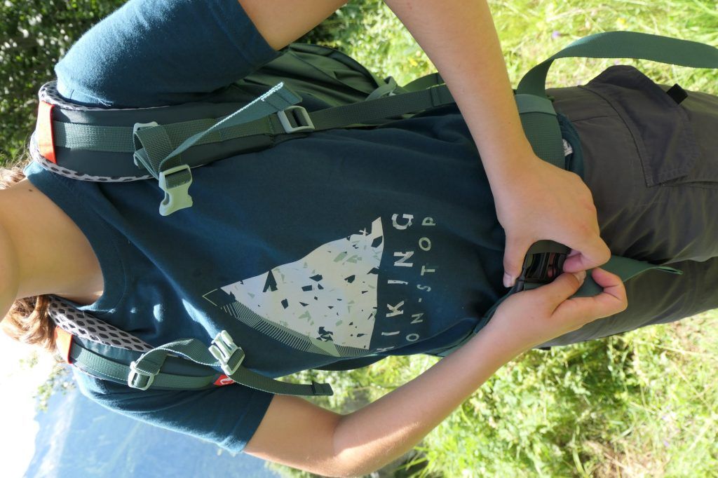 Ganz raffiniert ist das Comfort Vario Tragesystem. Es kann der Rückenlänge so angepasst werden, dass der Tatonka Yukon 32 JR Trekkingrucksack sowohl unserer 15-jährigen Tochter, als auch unserem 11-jährigen Sohn passt! Es bietet im Lastenbereich bis 15 Kilogramm eine gelungene Verbindung aus Leichtigkeit, Flexibilität und solider Ableitung der Traglast in den Beckenbereich. Die gepolsterte Rückenkonstruktion sorgt für Luftzirkulation. Die Lastkontrollriemen auf den Schultergurten verteilen die Last des Rucksacks gleichmässig. Auch die gepolsterten Hüftgurte und der Brustgurt können individuell und unkompliziert der jeweiligen Anatomie angepasst werden. Wie rückenschonend eine Last auf den Körper verteilt werden sollte, ist den Teens eher wurscht – Hauptsache bequem und einigermassen schick. Das Design des Tatonka Yukon 32 JR Trekkingrucksack ist zeitlos, schnörkellos und die Farben passen zu jeder Wanderausrüstung. Soweit alles gut.