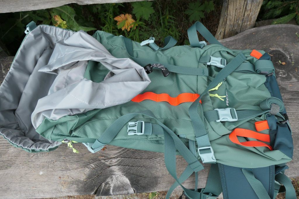 Der Tatonka Yukon 32 Junior Trekkingrucksack bietet mit einem Volumen von 32 Litern viel Platz für Material und Vorräte. Das Hauptfach kann mittels Reissverschluss zu einem Bodenfach abgetrennt werden. Dies ermöglicht schnellen Zugriff von aussen. Der Reissverschluss hierfür ist gut geschützt von einem Saum, weshalb es manchmal ein bisschen knifflig ist, ihn zu öffnen. Das Deckelfach mit Schlüsselhalterung eignet sich speziell für kleinere Gegenstände, die man schnell griffbereit haben möchte. Eine Seitentasche mit Volumenfalte bietet Platz für Handy, Sonnenbrille oder ähnliches. Seitentaschen, Materialschlaufen, Wanderstockhalterung und die Daisy Chain Schlaufen an der Front bieten zusätzlich viele Möglichkeiten um zusätzliches Material (Jacke, Schlafsack, Isomatte, Kochutensilien etc.) anzubinden. Die seitlichen Kompressionsgurte passen den Rucksack am Gepäcksinhalt an und sorgen für festen Halt.