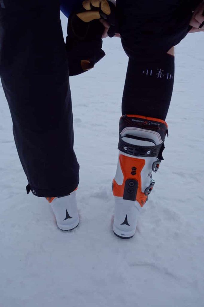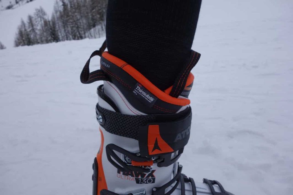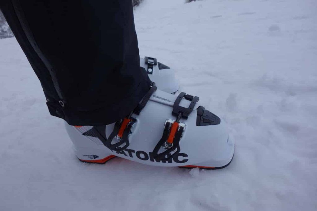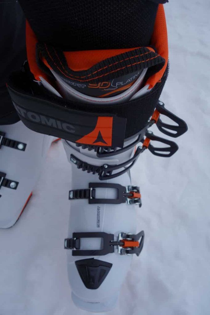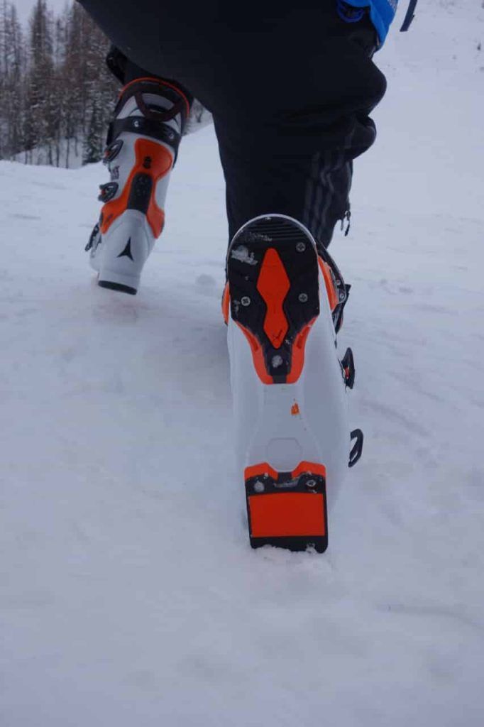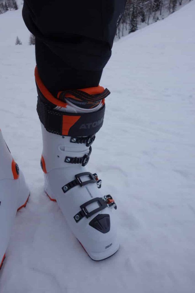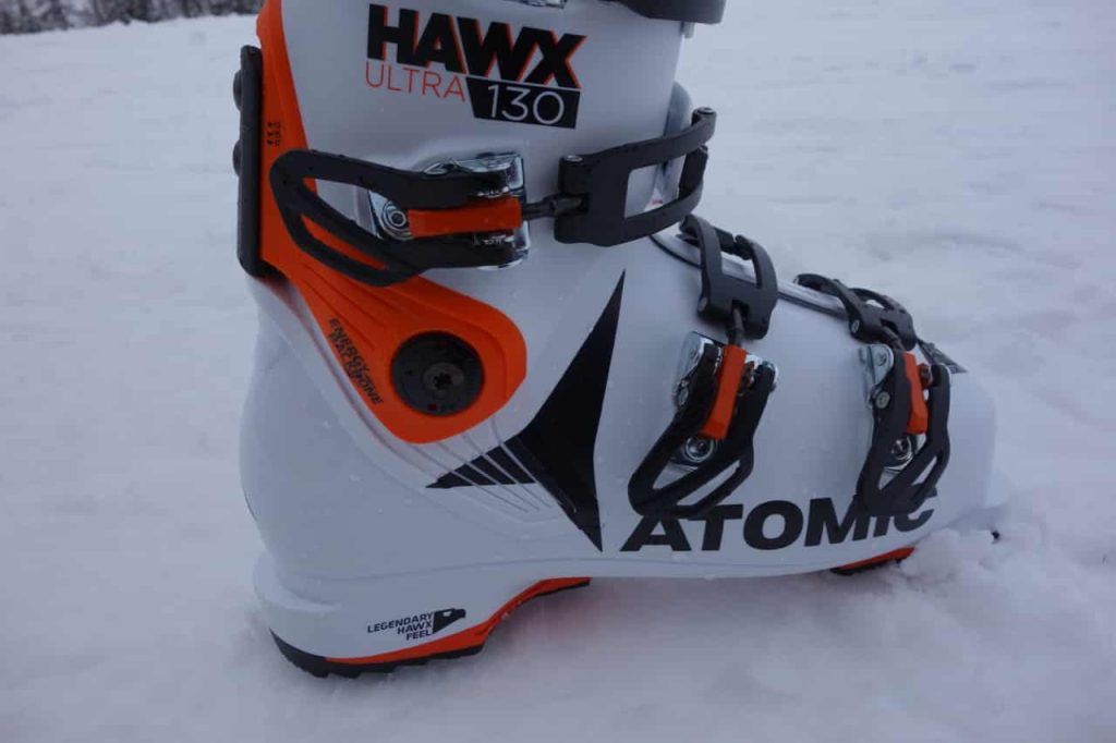 Getestet habe ich das Topmodell, den Atomic Hawx Ultra 130 mit einem Flex-Index von 130 – es sind Modelle ab 80 erhältlich. Neben der Schale hat er eine sog. Energy Backbone – das verstärkte asymmetrische Rückgrat verleiht dem Schuh zusätzliche Stabilität und optimiert den Kantengriff.