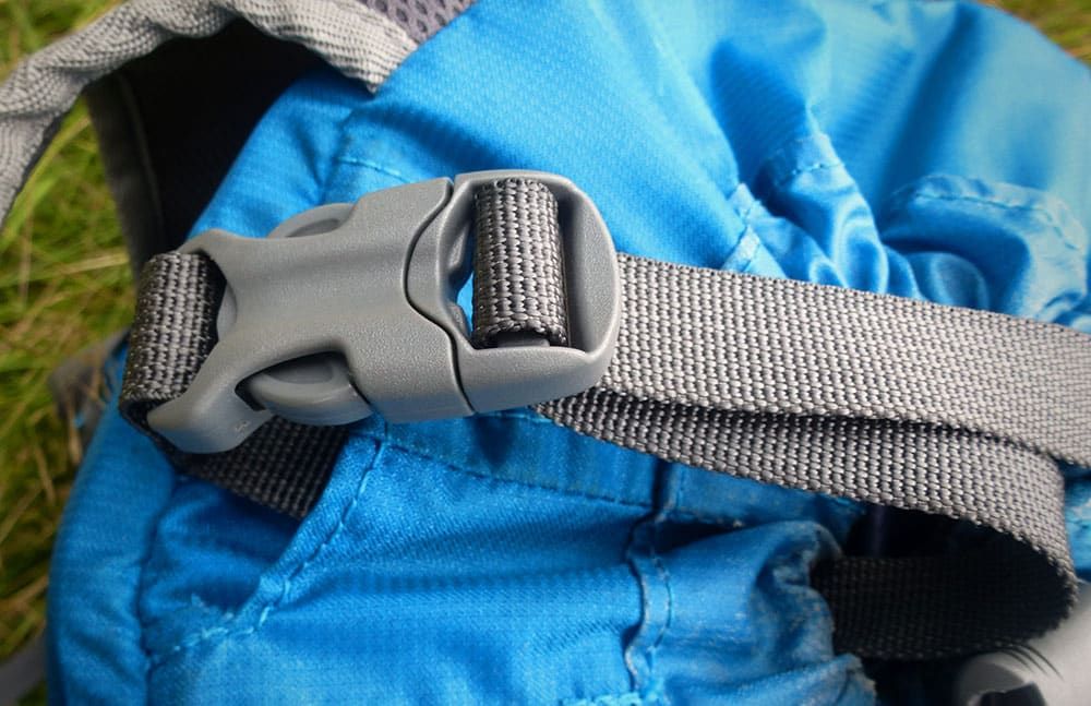 Der Brustgurt des Blue Ice Dragonfly 25L Pack ist verstellbar und lässt sich entfernen – das System kommt ohne Clips aus und ist gewichtoptimiert einfach durch die Riemenhalterungen gefädelt. Der Dragonfly ist ein Multitalent und so packte ich den Rucksack für eine Klettertour. Bepackt mit Expressen, Gurt, Jacke, Helm, Trinkflaschen, Kletterschuhen und Stöcke liess sich der Blue Ice Dragonfly 25L mühelos an den Fels tragen. Der Rucksack eignet sich bestens auch für Klettersteige oder für Mehrseiltouren – der Hüftgurt kann abgenommen werden und stört nicht mit dem Klettergurt.