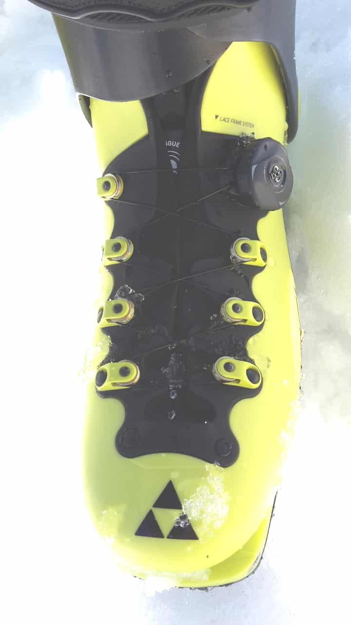 Das Boa-System ist Rollen gelagert, was sicher zu einer langen Lebensdauer beiträgt und auch eine gleichmässigere Zuziehung des Schuhes zulässt. Gemäss Fischer sind bis jetzt noch keine Seilrisse zu verzeichnen. Auch speziell ist das SOMATEC System der Fischer Travers Carbon Schuhe. Dabei wird der Schuh ca. zehn Winkelgrad in V-Form aus der Längsachse herausgenommen.