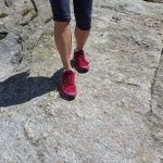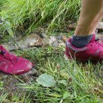 Rund um den Outdoor-Schuh schützt ein hochgezogener Rand vor scharfen Steinen, eindringender Feuchtigkeit und Dreck. In moorigen oder matschigen Abschnitten blieben dadurch meine Füsse trocken, auch wenn ich leicht im weichen Untergrund eingesunken bin. Nur wenn morgens noch der Tau auf der Wiese lag, hatte ich aufgrund des durchlässigen Obergewebes alsbald nasse Treter. Aber der Fünfer und das Weggli – ein leichter, luftiger Wanderschuh und komplette Wasserdichte – kann man bekanntlich nicht haben.