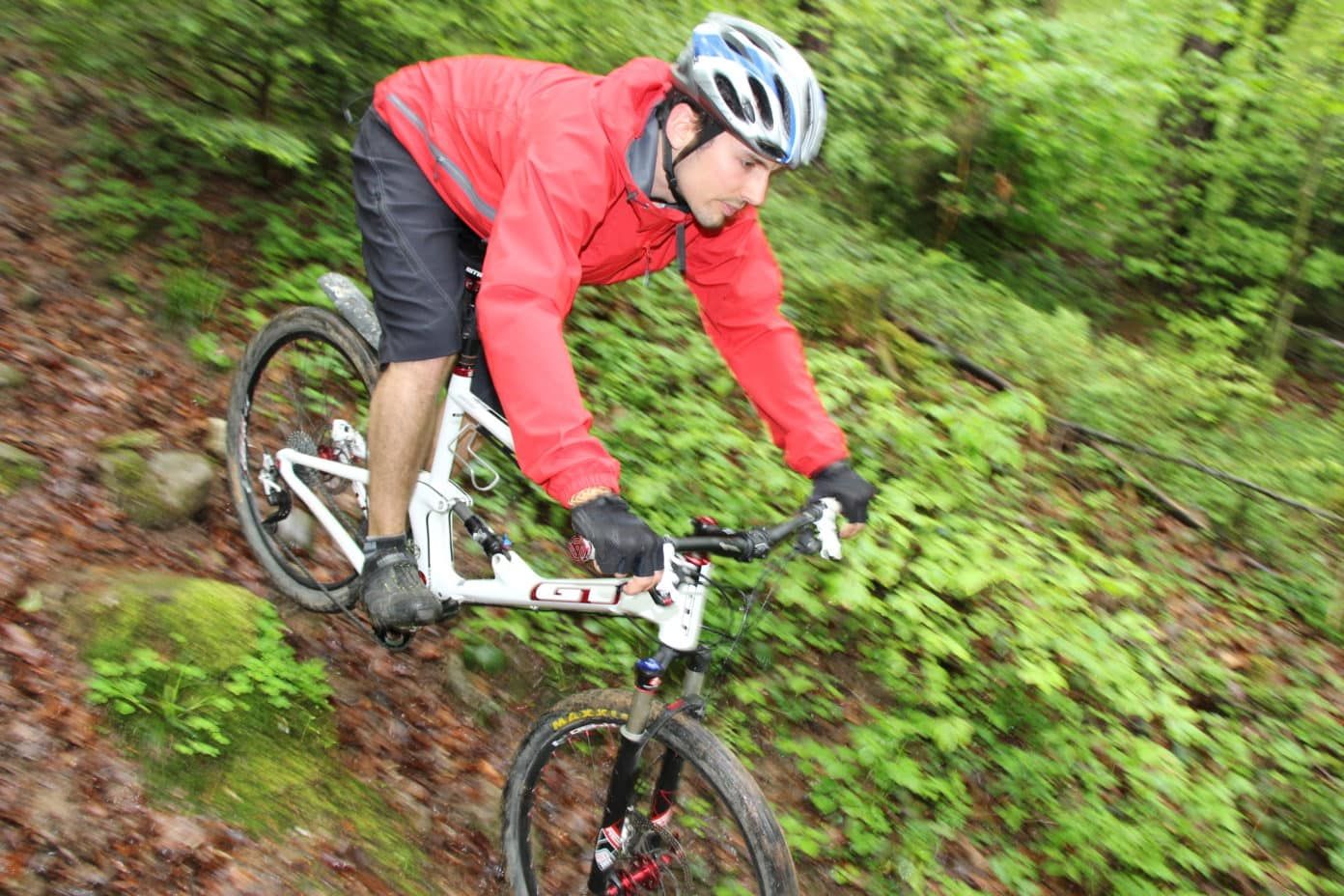Dem Härtetest der Funktionalität wird die Outdoor Research Allout Hooded Jacket dann aber erst beim Biken unterzogen. Einerseits muss die Jacke in eine kleine Tasche passen, wenns nicht regnet. Durch die effektive Komprimierbarkeit auf gute zwei Faustgrössen entspricht die Outdoor Research Allout Hooded Jacket diesem Kriterium. An kälteren Tagen empfiehlt es sich aber für die Abfahrten noch eine zusätzliche Schicht anzuziehen – denn das dünne Tuch schützt zwar gut vor dem Fahrtwind, aber hält den Körper kaum warm.