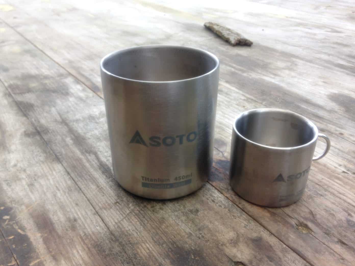 Der Titanbecher Soto AeroMug 450 ist sicherlich ein tauglicher Begleiter im Rucksack weil er so leicht ist aber ein grosses Fassungsvermögen hat, so dass man daraus auch mal eine Suppe essen kann. Der Soto AeroMug 120 ist ein süsses, stilvolles Tässchen, das man aber bei möglichst wenig Packgewicht vermutlich eher zu Hause lässt, da ein Espressotässli auf Reisen, bei welchen das Gewicht zählt, eher Luxus ist. Aber nett anzuschauen sind beide allemal.