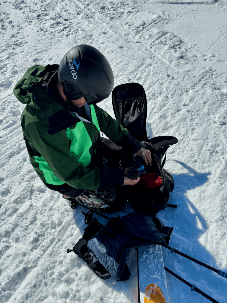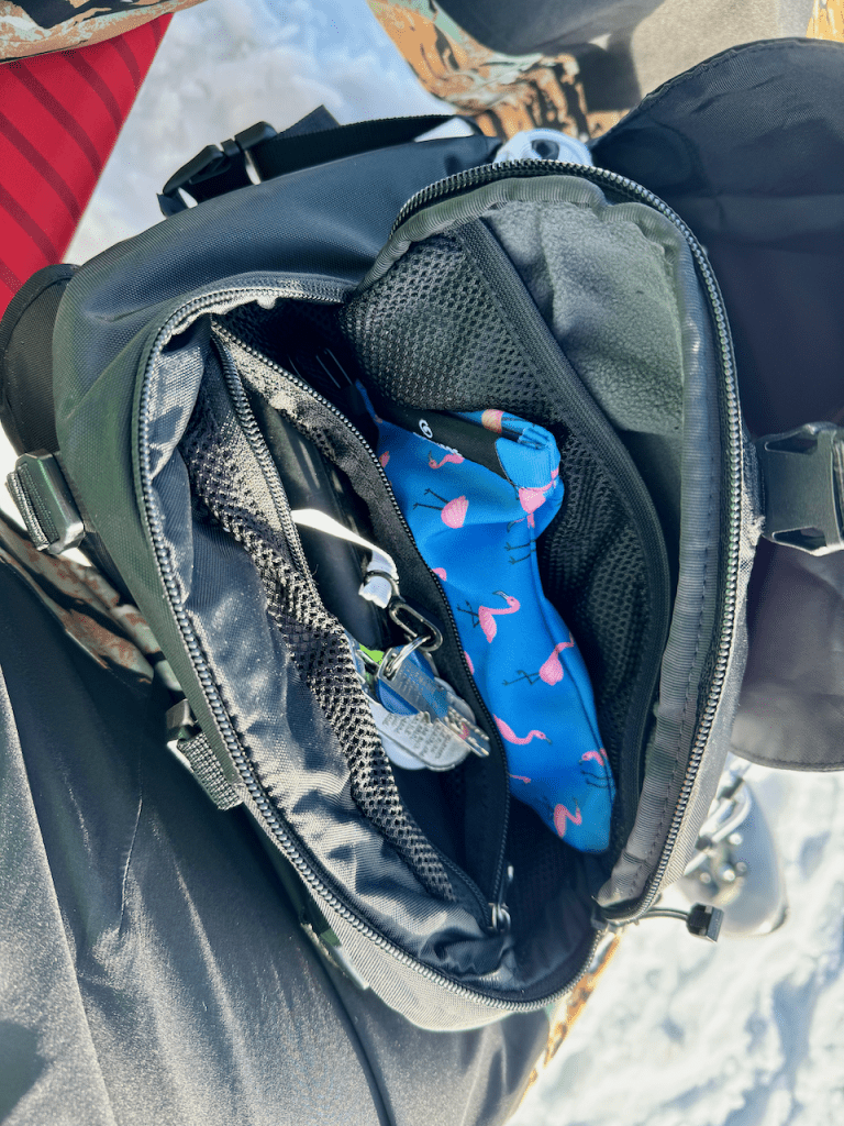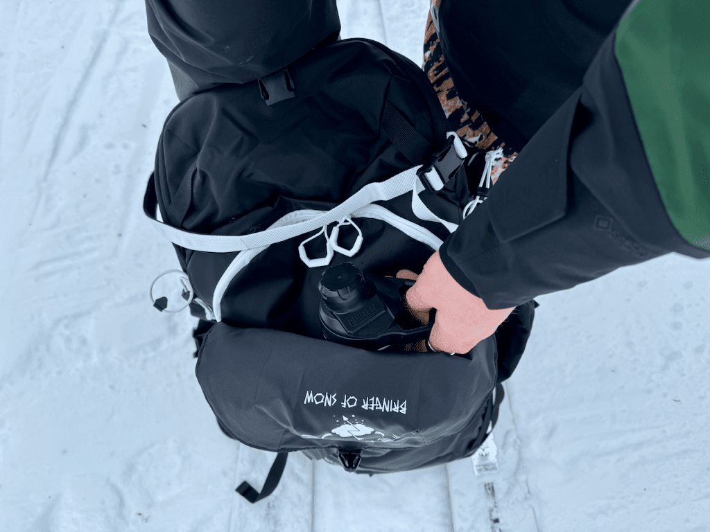 Die Ausstattung des The North Face Snomad 34 mit einem Fach für den Trinksack, das ich im Winter selten nutze, spricht für seine Vielseitigkeit. Ein warmes Getränk aus der Thermosflasche bevorzuge ich jedoch auf meinen Touren.