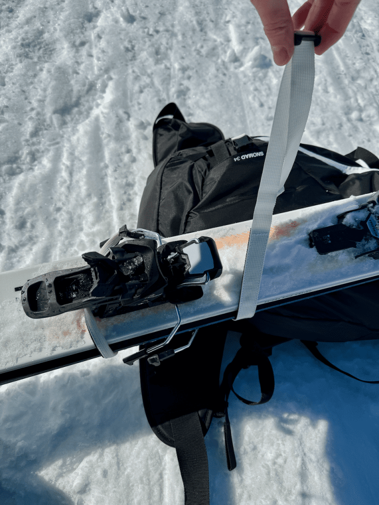 • Schnallen ermöglichen das diagonale Tragen von Ski und Snowboard