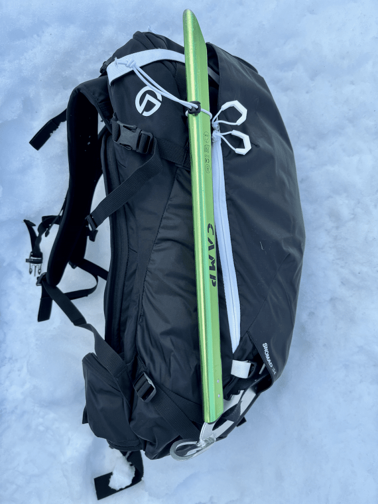 Die Zweckmässigkeit des The North Face Snomad 34 Rucksacks für Skitouren steht ausser Frage, auch wenn ich persönlich ein Hauptfach mit Öffnung von oben bevorzuge.