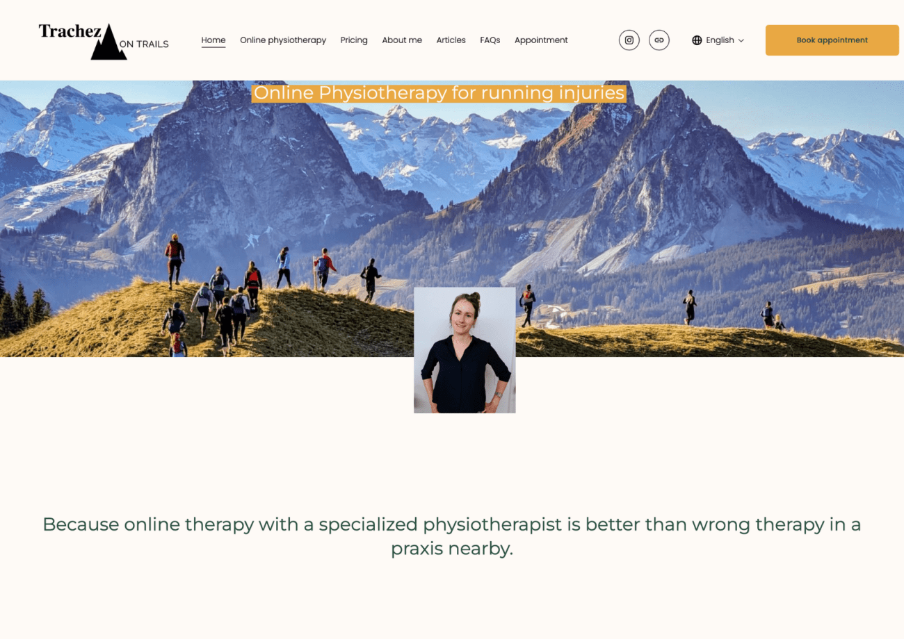 Laurence Trachez, eine erfahrene Physiotherapeutin und begeisterte Trailläuferin, bietet auf ihrer Website Trachez On Trails ein Online-Physiotherapie-Angebot an. Dort stellt sie Beratung bei Läuferbeschwerden und -verletzungen sowie Tipps und Analysen zur Verletzungsprävention zur Verfügung.