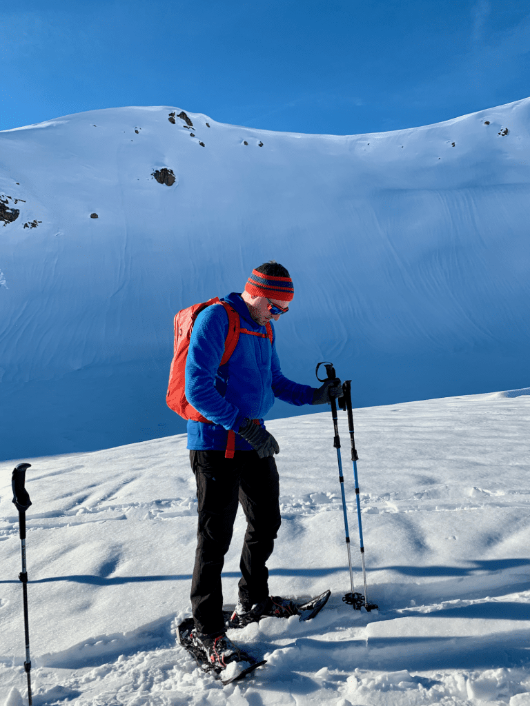 Als Bergsportler, der im Winter viel mit Schneeschuhen unterwegs ist, habe ich in der Saison 2021/2022 die TSL Highlander Adjust BOA getestet. Als Wanderleiter des Schweizer Bergführerverbandes und Wanderleiter mit eidgenössischem Fachausweis leite ich regelmässig Schneeschuhtouren und Lawinenkurse. Die Highlander Adjust kamen sowohl bei normalen Schneeschuhtouren als auch bei Lawinenkursen zum Einsatz.