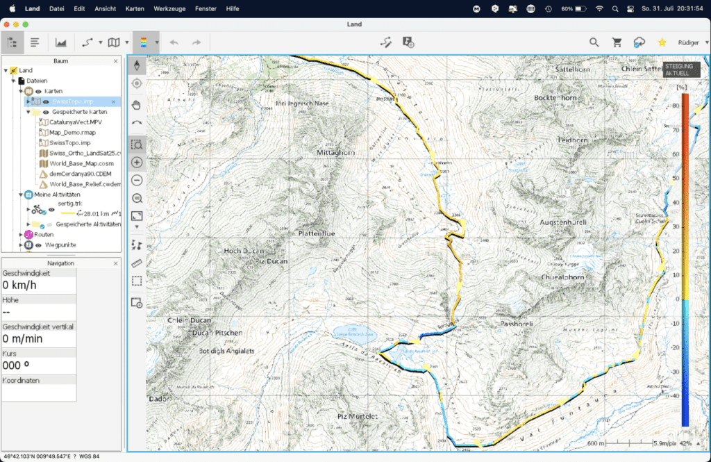 Das Herzstück des TwoNav Cross GPS ist natürlich seine Navigationsfunktion. Auch wenn die initiale Positionsbestimmung nach dem Einschalten manchmal etwas länger dauerte, war ich von der Präzision und Zuverlässigkeit des GPS-Signals überzeugt. Besonders im Wald oder in städtischen Gebieten arbeitete es genau. Das integrierte System, das GPS, Galileo und Glonass kombiniert, bietet eine beeindruckende Flexibilität und Genauigkeit.