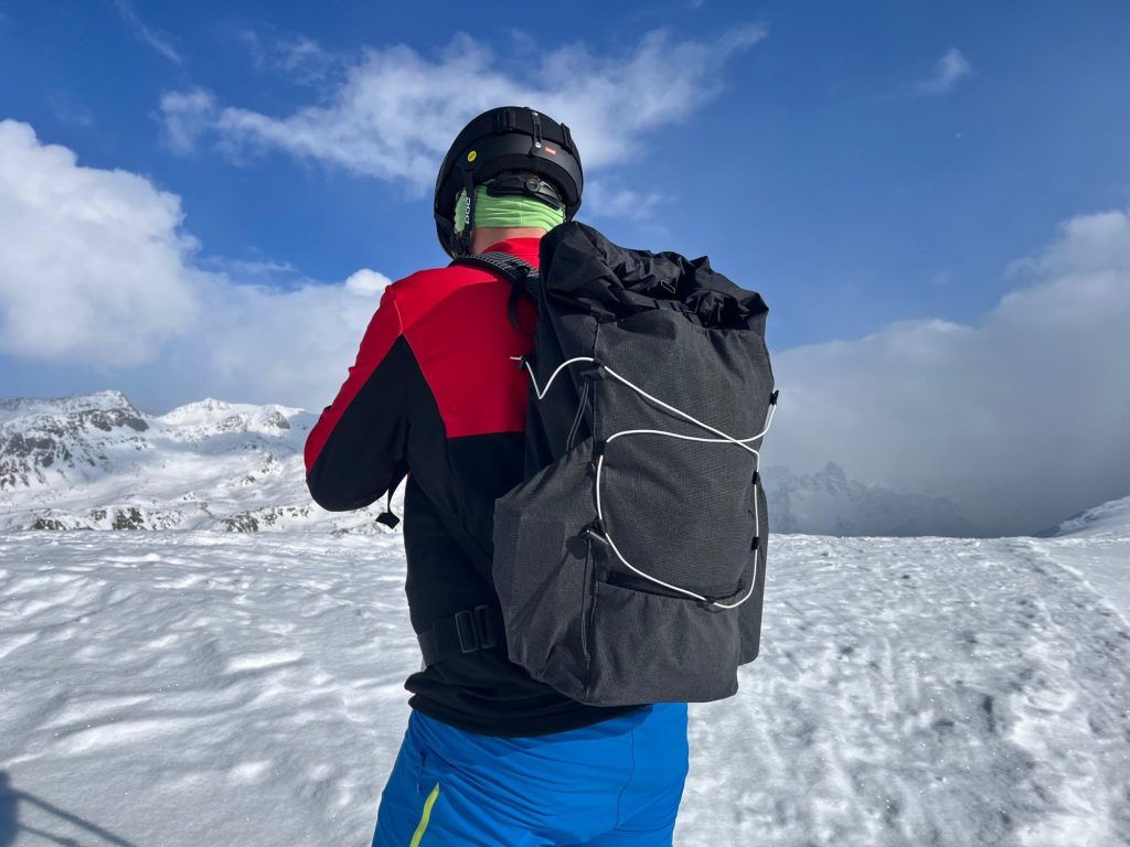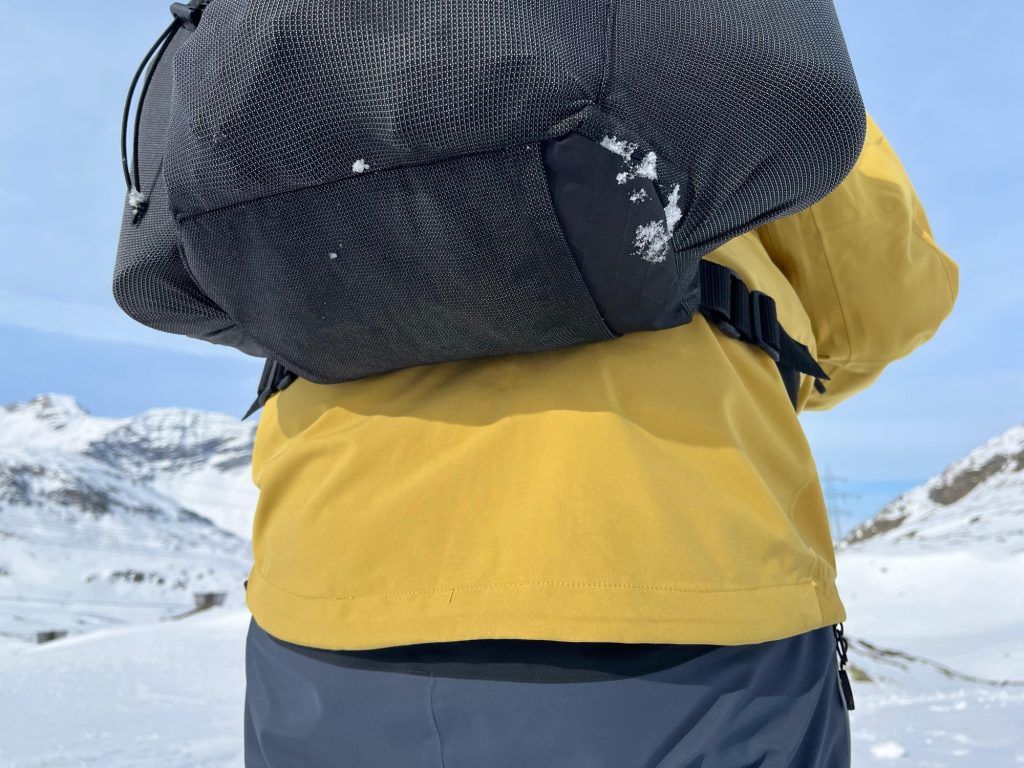 Ein weiteres Highlight ist die elastische Bodentasche, die Platz für kleinere Gegenstände wie Snacks bietet und durch ihre große Öffnung auch beim Gehen leicht zugänglich bleibt. Der Rollverschluss ermöglicht es, das Volumen des Hauptfachs je nach Beladung anzupassen, was für unterschiedlichste Touren von Vorteil ist. Der Rucksack hielt den Inhalt zuverlässig trocken und geschützt.