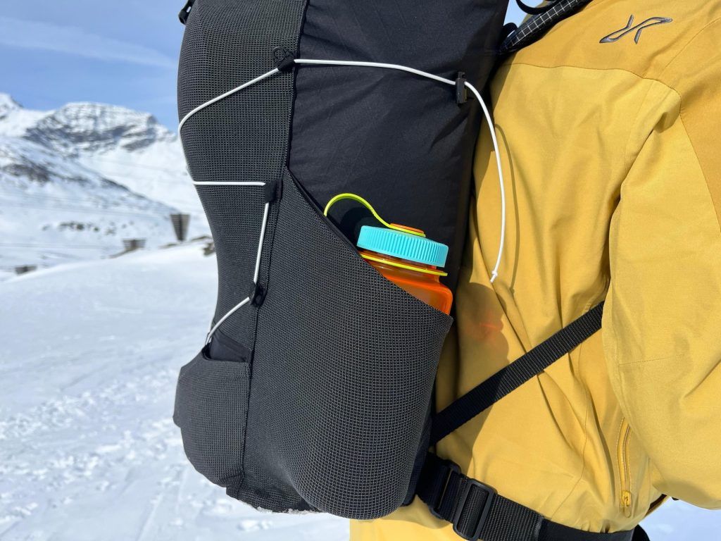 Neu ist die Wiedereinführung der elastischen Eingrifftasche, da sie beim 2023er Modell oft vermisst wurde. Sie ist mit aufgesetztem Rucksack erreichbar und bietet Platz für Handschuhe, Stirnlampe, Wasserfilter, Snacks, Sonnenbrille, etc. Elastisch, von oben erreichbar und per Kordel gesichert, sodass Dinge am Herausfallen gehindert werden.