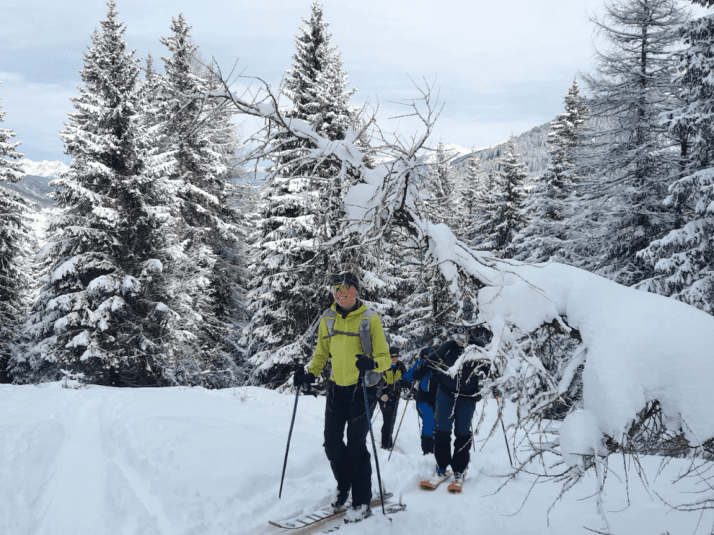 Doch was macht die Wipptaler Skidurchquerung so besonders? Die Tour vereint Nachhaltigkeit, Flexibilität, Genuss und Komfort mit dem Abenteuergefühl einer Alpendurchquerung. Die Tagesetappen führen durch wunderschöne Wälder und die Gipfel bieten einen atemberaubenden Ausblick auf das Wipptaler Gebirge. Ausserdem überquerst du während der Tour die italienische Landesgrenze, was dem Erlebnis eine besondere Note von Dolce Vita verleiht.