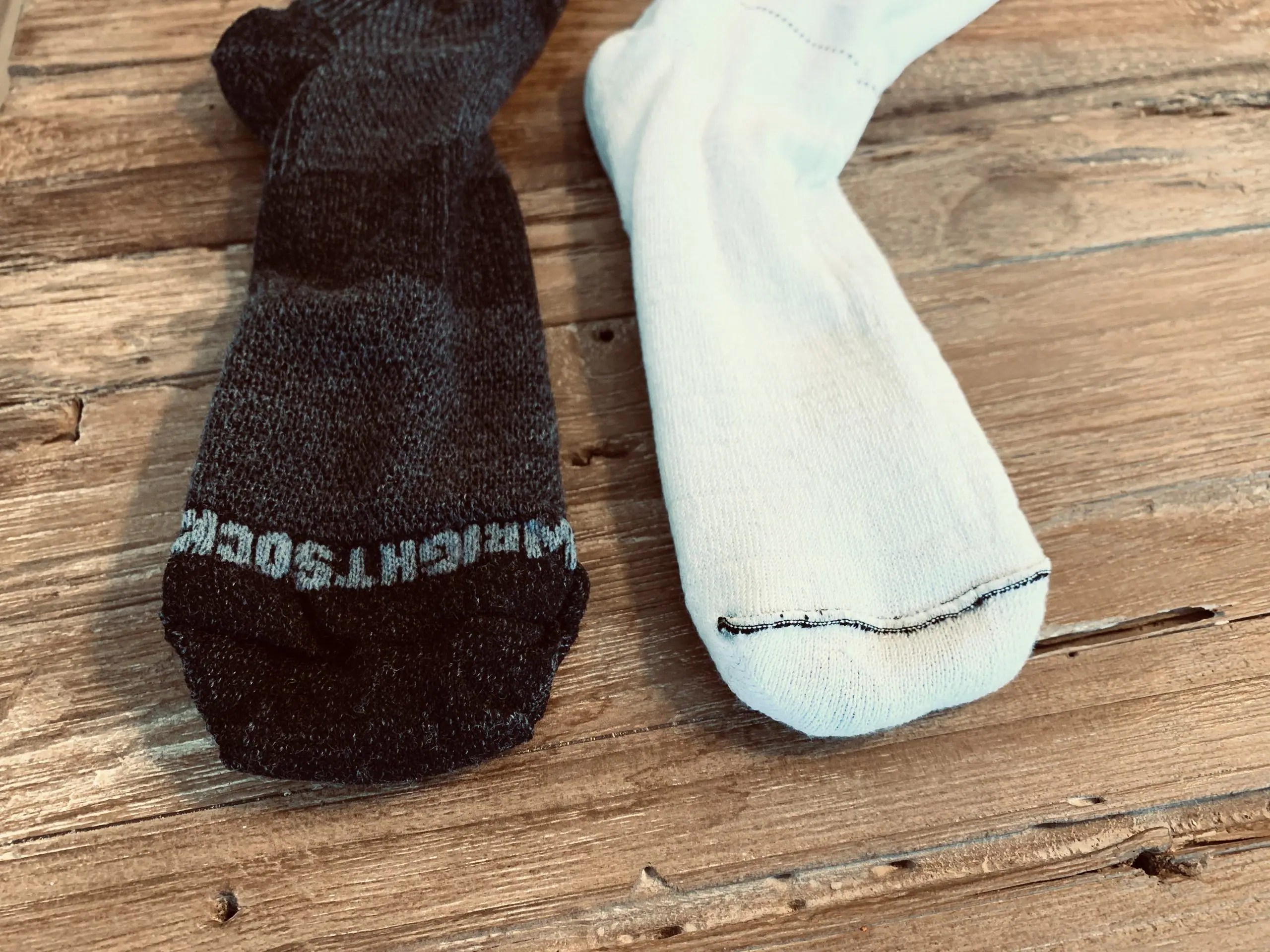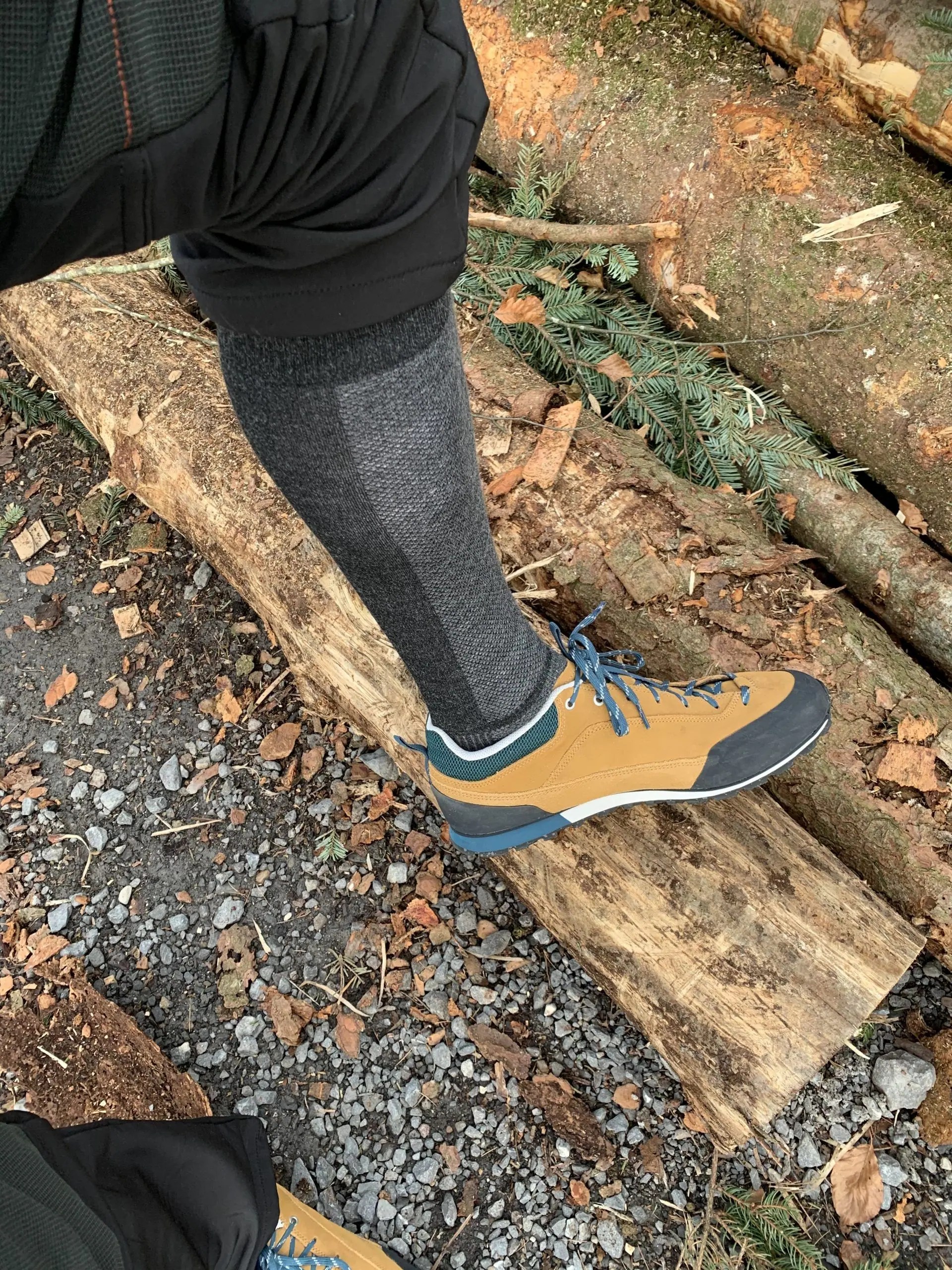 Ich testete die lange Wrightsock merino coolmesh Variante, welche bis über die Waden unter die Knie ragen. Beim ersten Tragen der Socken in Schuhen fühlt es sich ein bisschen so an, als ob man im Schuh herumrutschen würde. Dies ist jedoch nicht der Fall und nach kürzester Zeit gewöhnt man sich an die doppellagige Konstruktion.